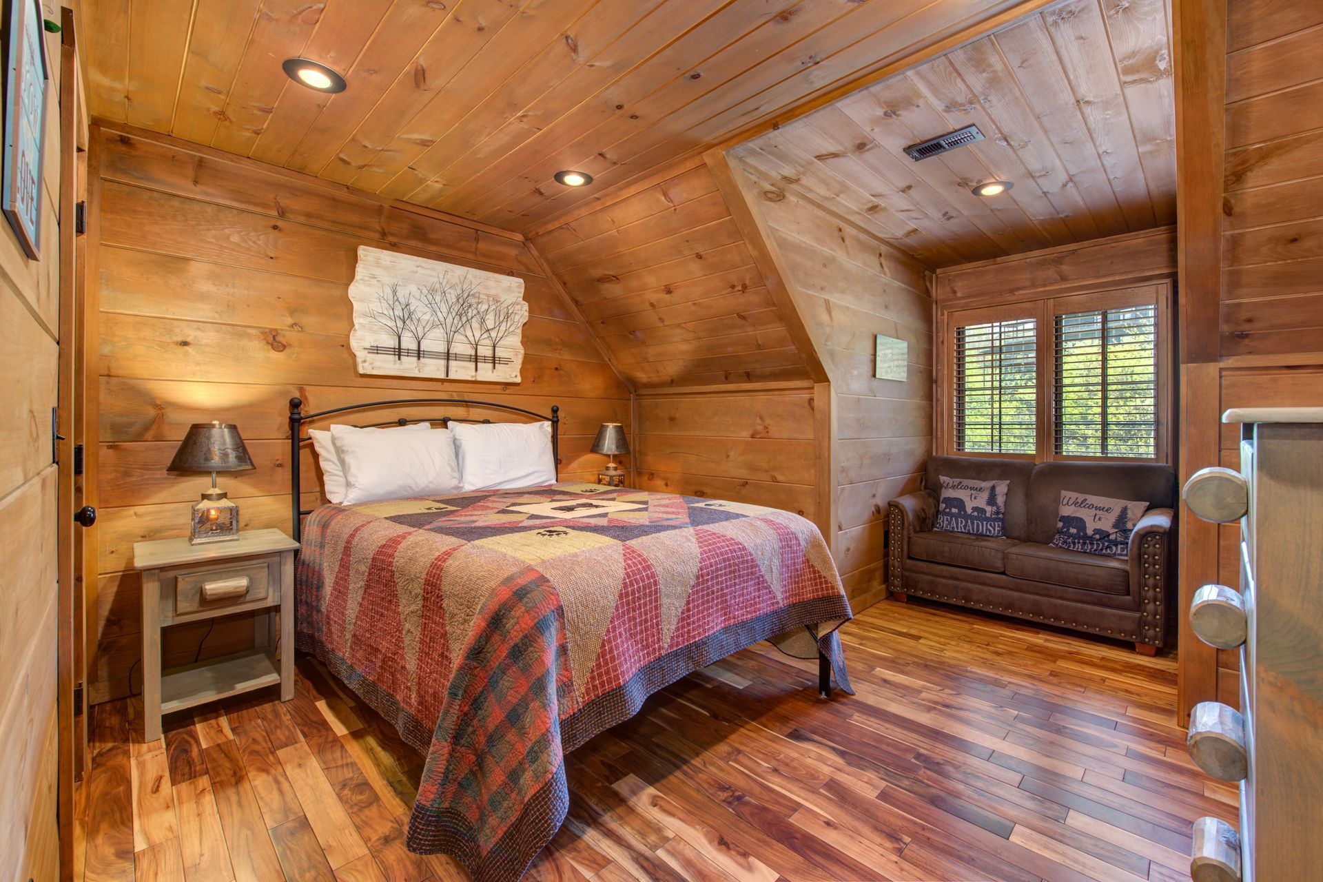 The Black Bear Cabin, the first of our completed cabin family, is also perfectly located whether you want convenient access to downtown Gatlinburg, Pigeon Forge, or an incredible drive through the Great Smoky Mountain National Park. Or Perhaps, you want to relax and hide away from the hustle and bustle of life. Maybe you want to cozy up with your sweetie and enjoy all the private luxury comforts the cabin offers.